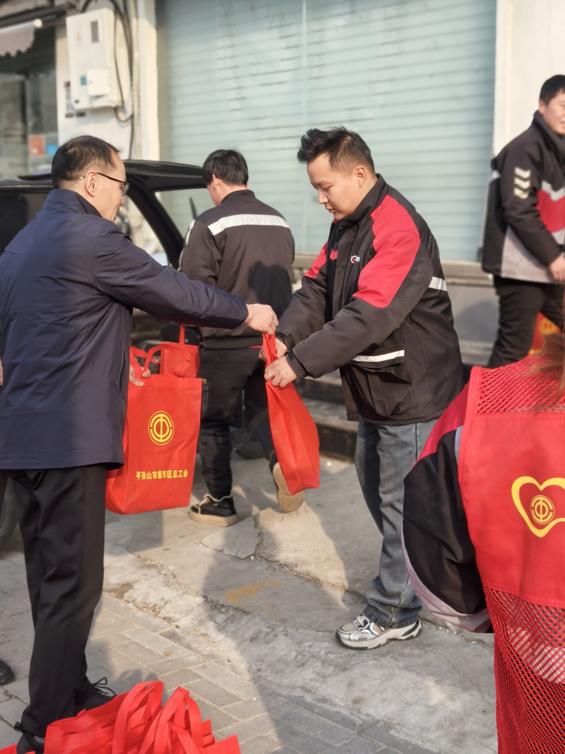 轩书记一行先后来到河南省顺丰速运有限公司平顶山分公司新华区第一营业部、美团外卖平顶山一站、河南中盛安物流产业园有限公司、平顶山市一家家政有限公司等企业,为新业态劳动者送去了棉帽、脖套、手套、耳暖等“温暖礼包”。并对他们一直以来在各自岗位上的辛勤劳动表示敬意,同时嘱咐大家,在忙碌工作的同时,一定要注意防寒保暖,照顾好自己的身体,注意上下班路上的道路安全,工作和生活中如遇到困难随时联系工会,我们是大家的坚强后盾。