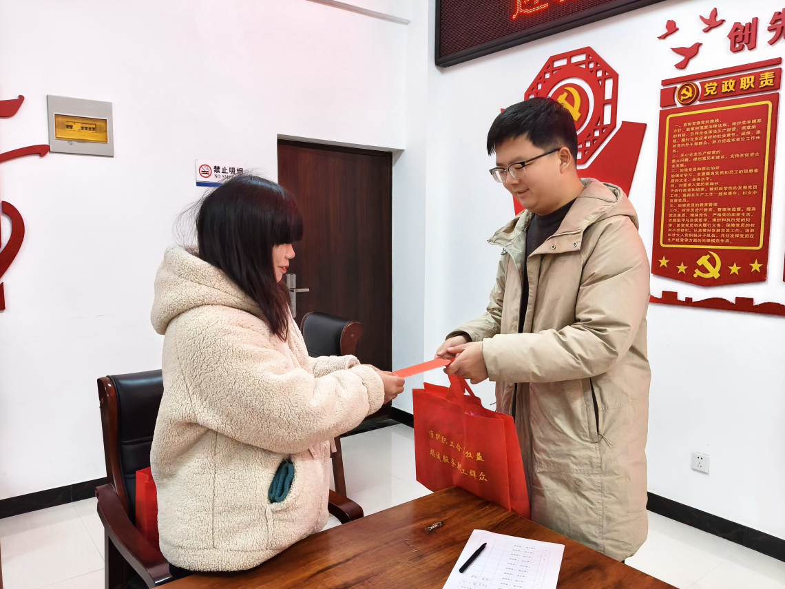 此外,为切实帮助困难职工缓解生活压力,区总工会针对辖区内10名家庭较为困难的职工开展专项帮扶,争取中央财政职工困难帮扶资金,为每位困难职工发放1000元慰问金,鼓励他们坚定信心、积极面对生活,用乐观的心态克服暂时的困难。拿到慰问金的职工们纷纷表示,感谢工会组织的关心与帮助,这份温暖让他们在新年到来之际倍感安心,也将以更饱满的热情投入到工作和生活中。