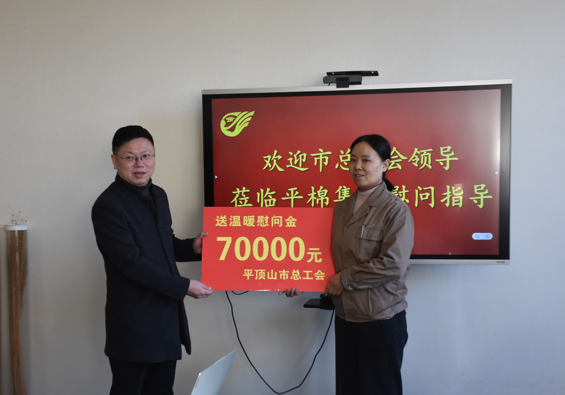 新春将至,暖意先行。1月15日上午,平顶山市人大常委会副主任、市总工会主席荆建刚带领市、县两级工会到平棉集团宝棉生产园区开展送温暖慰问活动,将7万元慰问金及党和工会组织的关怀送达企业与职工身边。