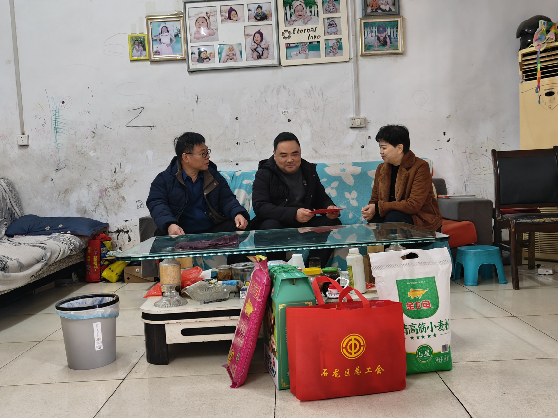慰问组首先来到困难职工吴红杰家中进行走访,详细了解其家庭生活状况与实际困难,鼓励其保持积极心态,并送上了米、面、油、鸡蛋等慰问品,让困难职工在严寒季节感受到组织的真切关怀。