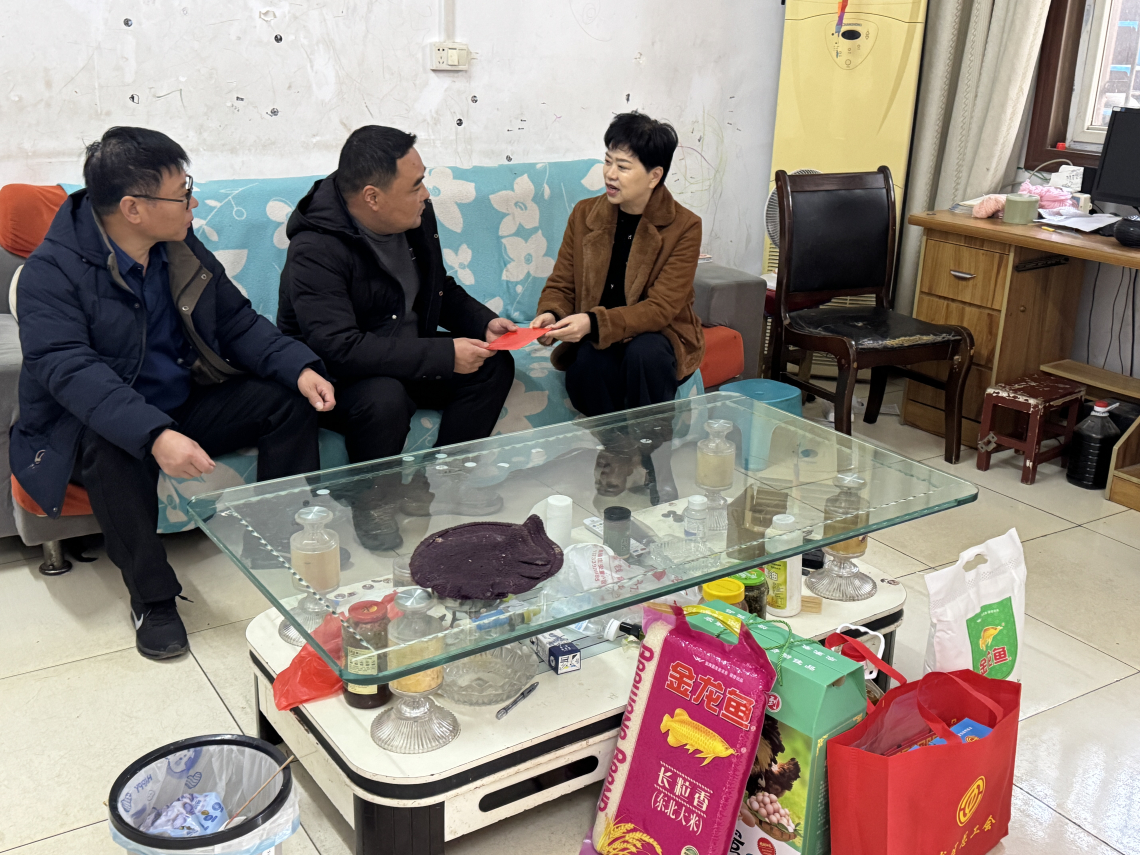 随后,慰问组前往石龙区高庄陈庄村,走访国源水务有限公司困难职工吴红杰家庭。43岁的吴红杰是家中唯一经济支柱,家庭状况复杂,生活压力巨大。杨毅详细询问其家庭收支、医疗开支及子女教育情况,叮嘱区总工会将其纳入长效帮扶机制,协调医疗救助、助学政策等资源,并送上慰问金和米面油等生活物资。