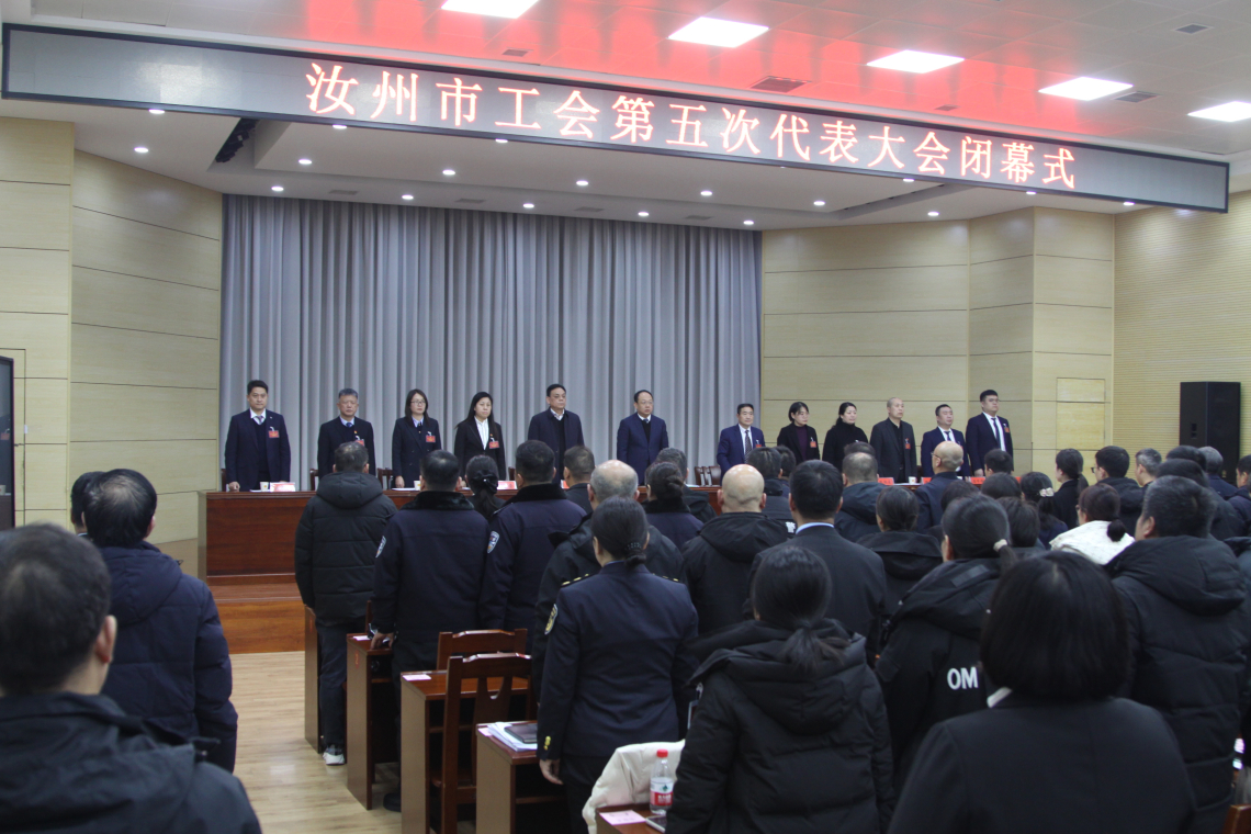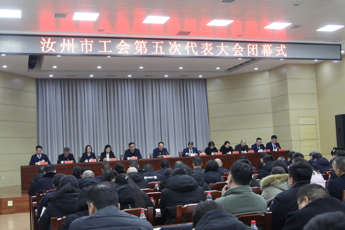 1月21日下午,汝州市工会第五次代表大会圆满完成各项议程,在市委七楼会议室胜利闭幕。市委副书记杨涵、政协党组副书记、副主席范响立出席闭幕式、市人大常委会副主任、市总工会主席杜占广主持闭幕式并致词。