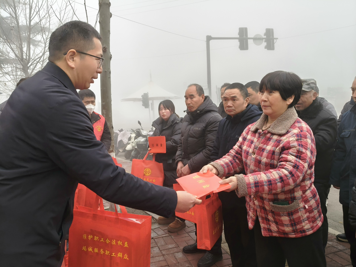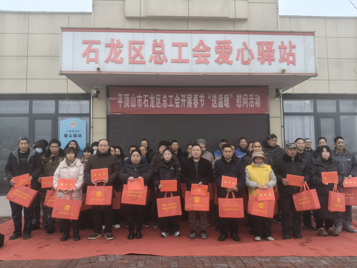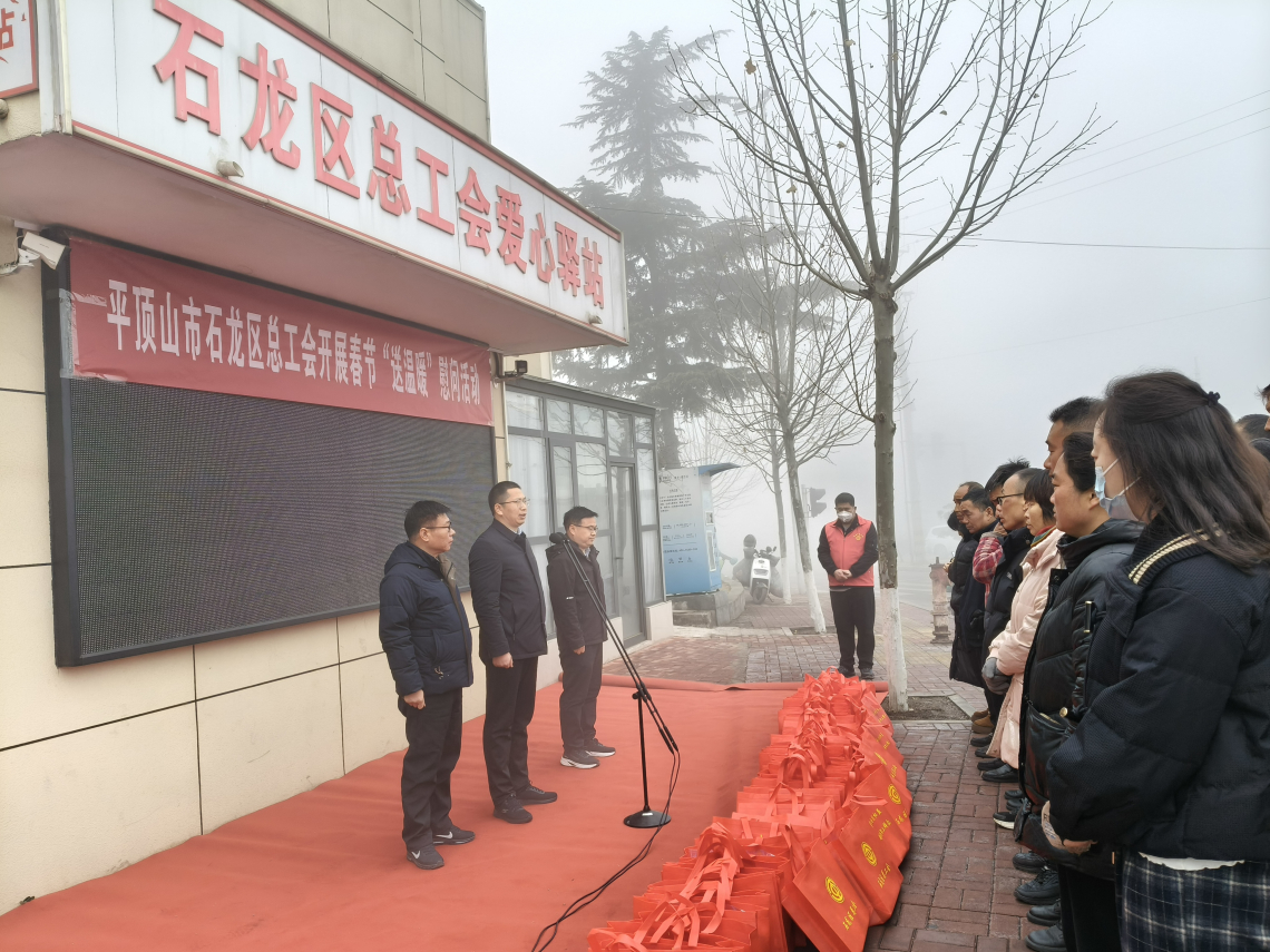 1月28日,石龙区总工会在农贸市场爱心驿站开展春节“送温暖”慰问活动,区总工会党组书记、副主席王领昭,党组副书记、副主席王文书,党组成员、副主席黄铭涛出席活动。