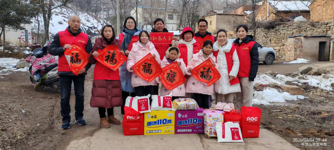 活动现场,志愿者与孩子们手中的“福”字相映成趣,积雪未消的山村因这份暖意显得格外温馨。三位女童紧紧依偎在“爱心妈妈”与志愿者怀中,稚嫩的脸庞上洋溢着幸福的笑容,手中捧着的新衣、零食与福字,成为这个立春最珍贵的礼物。