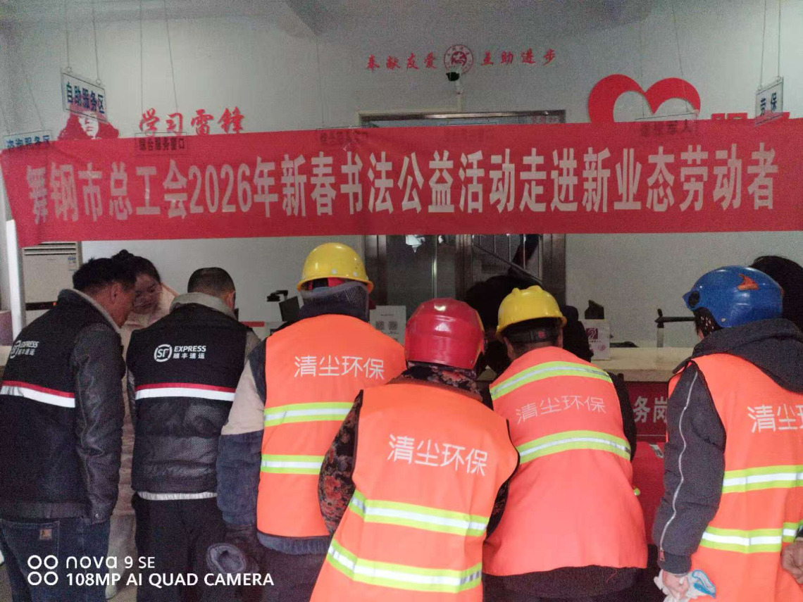新春将至,年味愈浓。2月9日上午舞钢市总工会精心组织的“万福迎春”送万福、进万家书法公益活动在市职工服务中心大门口如期开展,以笔墨为媒传递新春祝福,把工会“娘家人”的温暖送到全市职工的心坎上。