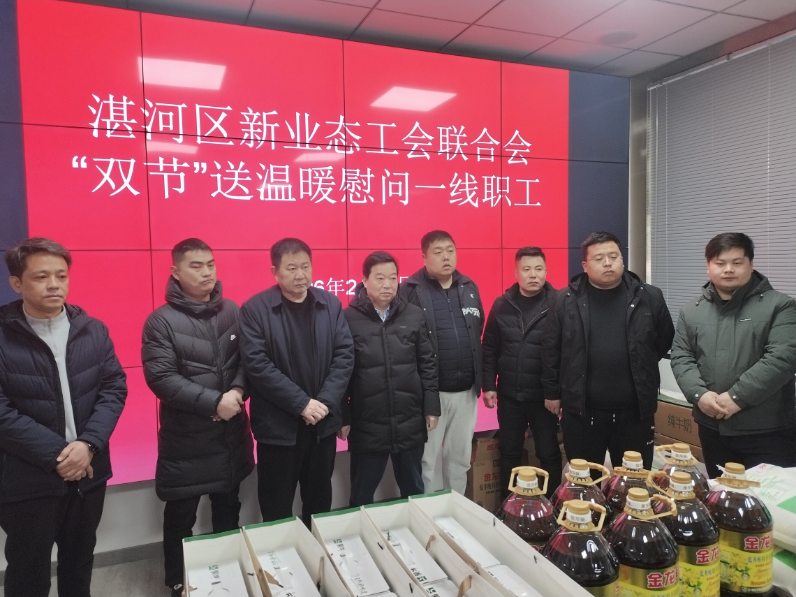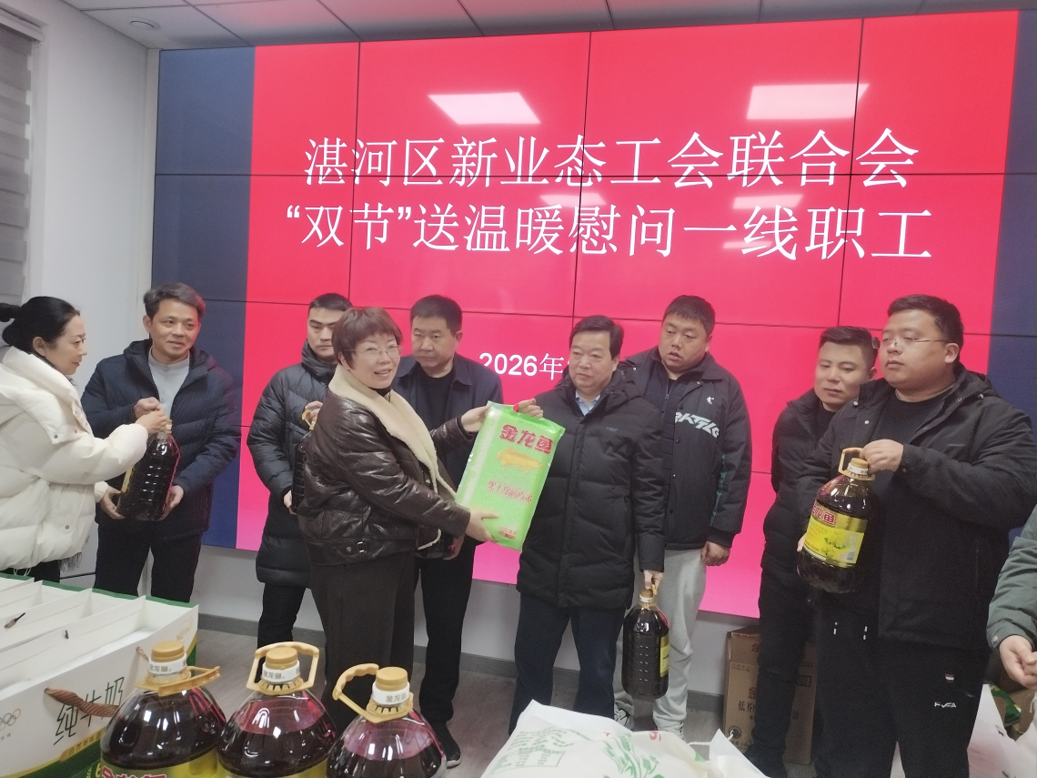 2026年2月11日,在春节来临之际,湛河区新业态工会联合会开展“送温暖”慰问活动,向坚守一线的新业态职工致以节日的问候和诚挚的关怀。区总工会党组书记王俊娜、区新业态工会联合会主席陶艾荣带队,先后前往区交通局、辖区物流园开展慰问活动。