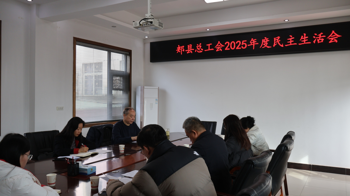 2月13日,郏县总工会党组召开2025年度民主生活会,县人大副主任、县总工会主席詹浩主持会议并讲话,县委第三督导指导组吴新飒同志到会指导。