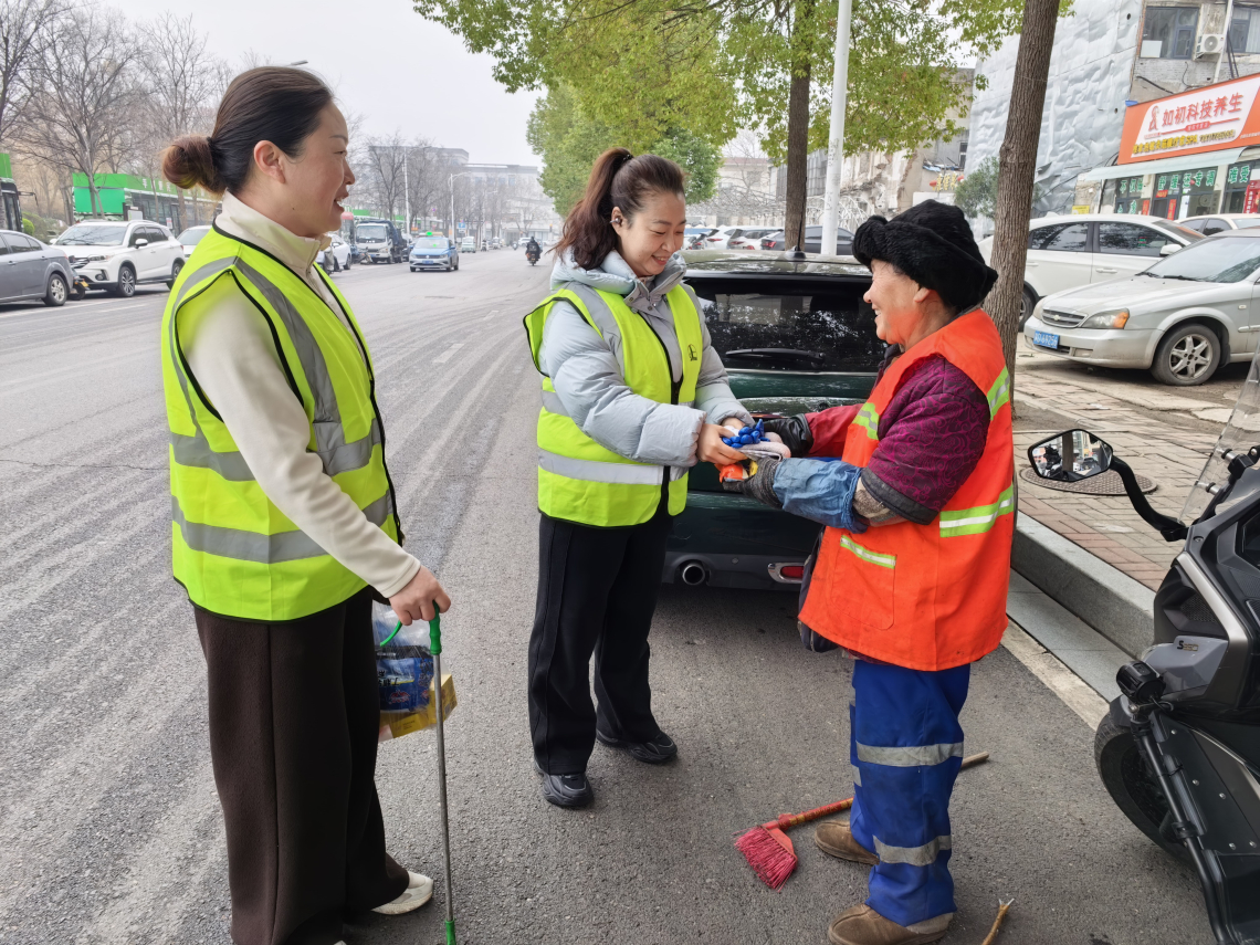 随后,工会代表和志愿者们向坚守一线的环卫工人送上了毛巾、香皂、洗衣粉、手套等劳保用品,并亲切询问他们的工作和生活情况,感谢他们为城市整洁付出的辛勤劳动。现场气氛温馨真挚,环卫工人们深受感动,纷纷表示感受到了来自工会组织的关心与尊重。