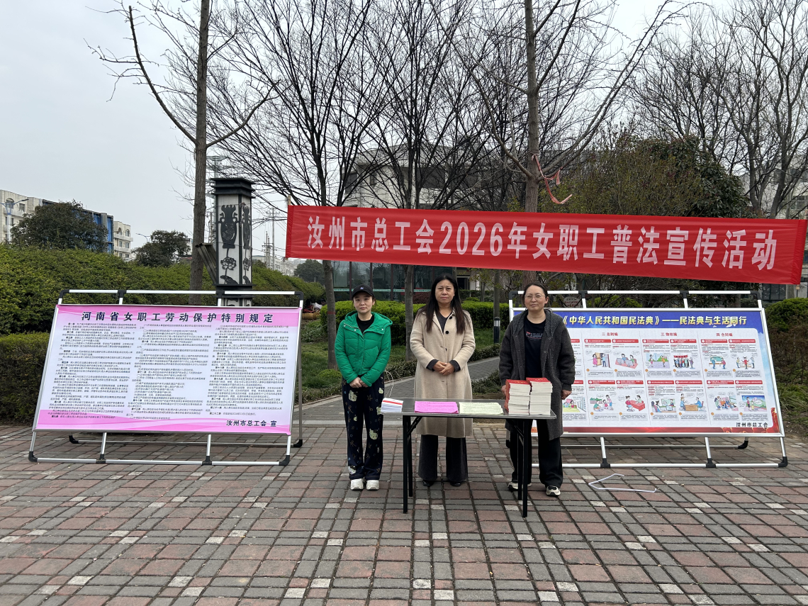 为进一步保障女职工合法权益,提升法治素养和自我保护能力,3月19日,汝州市总工会在市标游园广场开展了 “情系女职工 法在你身边”普法宣传活动,把法律知识和暖心服务送到广大女职工身边,市总工会副主席闫志莹参加活动。