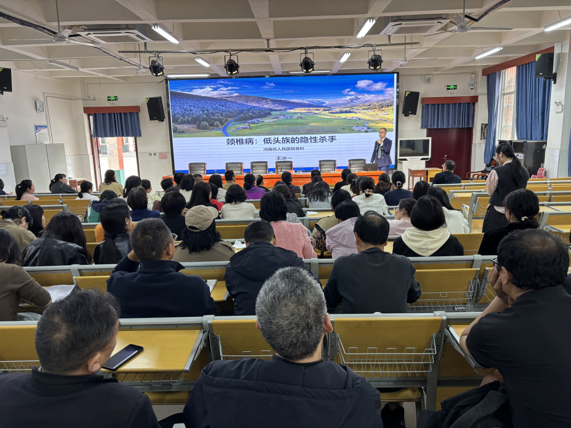 本次讲座特邀省人民医院派驻叶县人民医院主治医师王冰一(硕士研究生)、县中医院主治中医师郭莹莹老师,分别带来了《颈椎病:低头族的 “隐形杀手”》《幽门螺旋杆菌感染与胃癌风险关系》专题分享,两位专家结合专业知识,为职工科普颈椎病成因及日常养护技巧和如何科学看待、应对幽门螺旋杆菌。
