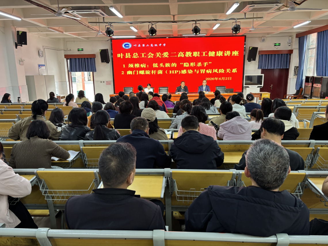 4月2日,叶县总工会关爱职工身心健康系列知识讲座第十一场在县第二高级中学成功举办,二高、中专职工参加讲座。