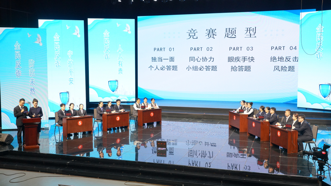 决赛通过微信视频号、抖音等平台进行全程直播,坚持“竞赛+宣传”相结合,持续扩大活动宣传覆盖面和社会影响力。竞赛设置个人必答题、团体必答题、抢答题、风险题四个环节,题目紧扣电信网络诈骗防范、账户风险管控、反诈政策法规等核心内容,兼具理论性、专业性与实战性,全面检验选手知识储备、临场应变与团队协作能力。