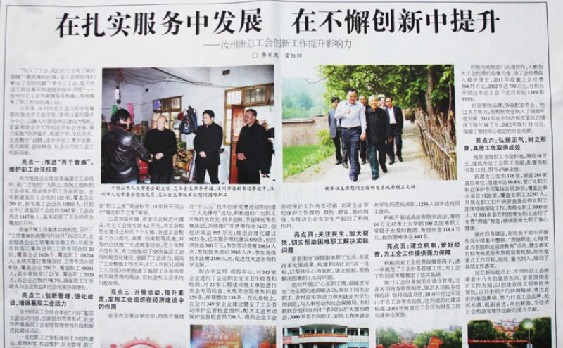 在扎实服务中发展 在不懈创新中提升 ——汝州市总工会创新工作提升影响力
