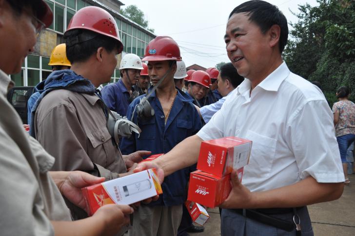 初伏的第二天7月15日下午,天气闷热,舞钢市正县级干部滕毅、市政府副市长闫广甫、市总工会主席陈云洲及市总工会班子成员一行人先后来到实业公司铁路公司、三和盛钢加公司、中加钢铁公司、龙山纺织公司等企业的生产一线,为高温天气中坚守在生产岗位上的一线职工送去了毛巾、肥皂、茶杯、矿泉水等物品;同时还将市总工会编印的《劳动合同法》、《企业民主管理规定》、《河南省企业职工民主权利保障条例》、《女职工劳动保护特别规定》等法律法规宣传小册子发放到职工手中。慰问中,闫市长向高温天气奋战在一线的职工表示感谢;并亲切地嘱咐一线职工,高温天气,一定要保护好自己的身体健康,避免中暑。市总工会主席陈云洲每到一处也详细询问了职工的生产情况,并要求企业负责人一定要做好防暑降温工作,尽量避开高温时节安排生产,以确保职工的身体健康。