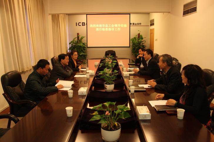 10月30日,市总工会党组成员、副主席李文生、市财贸工会主任余俊霞一行3人到中国工商银行平顶山分行调研检查工作。